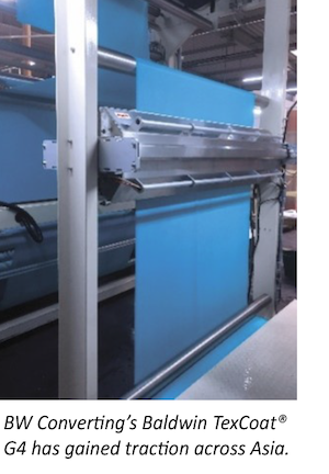 At both SaigonTex and INDO INTERTEX, BW Converting will highlight the company’s Baldwin TexCoat® G4 precision spray finishing system, which has gained strong traction across Asia for its ability to reduce water, energy and chemical consumption while delivering uniform chemical application and improved process control.